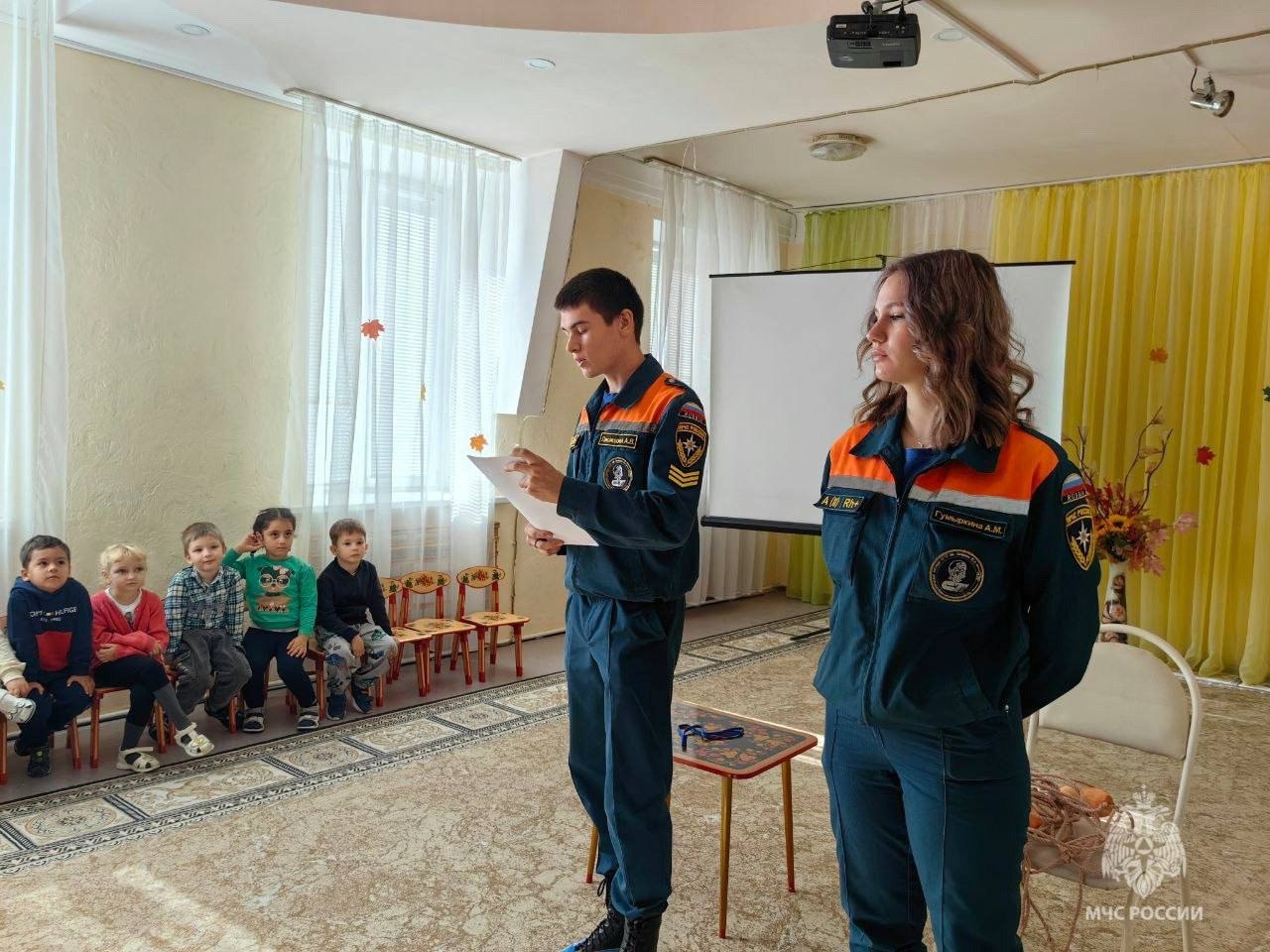 В рамках Дня гражданской обороны во всех образовательных учреждениях региона состоялись открытые уроки по безопасности. В 227-м детском саду «Антошка» занятие провели специалисты ГУ МЧС России по Саратовской области Пётр Шубин и Анатолий Абрамович вместе со студентами отделения Техносферной безопасности Ариной Гумыркиной и Александром Лисицким.