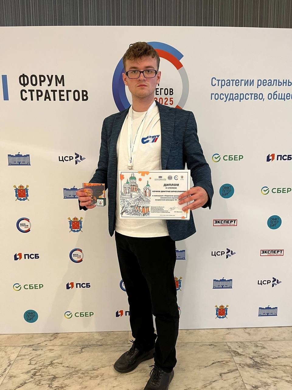 С 22 по 24 октября в Санкт-Петербурге прошел очный этап престижного Всероссийского конкурса «Молодые стратеги России» в рамках Форума Стратегов. Студент группы ИСП-931 Дмитрий Бочков под руководством Юлии Сергеевны Самыкиной представил наш Колледж и занял 3 место в номинации «Стратегии развития моего населенного пункта»!