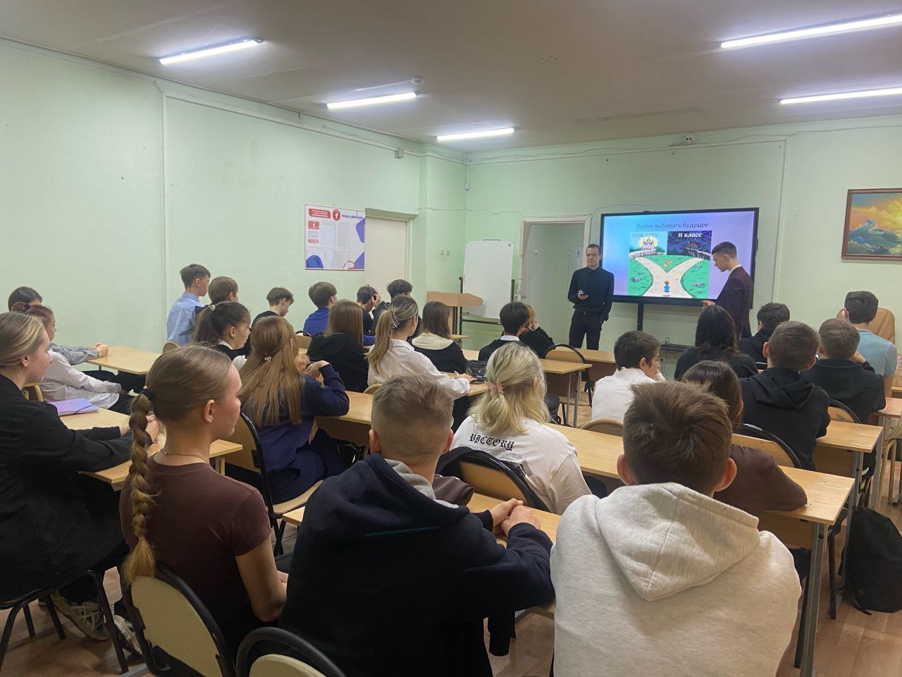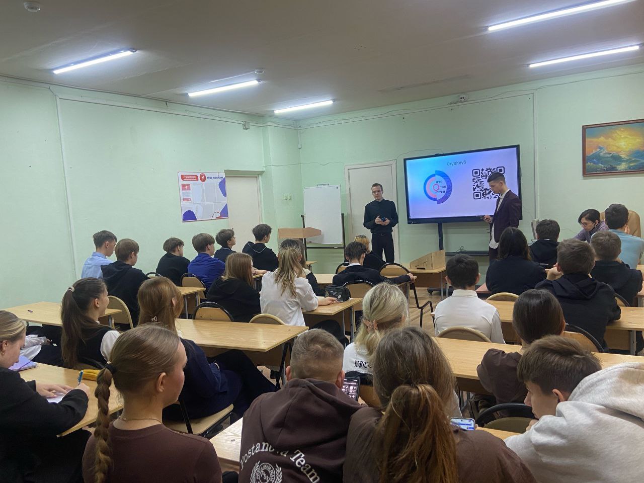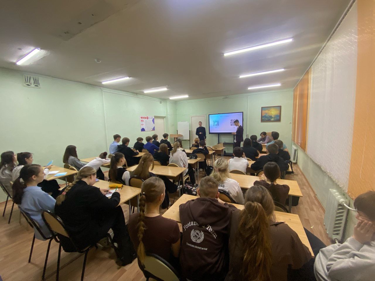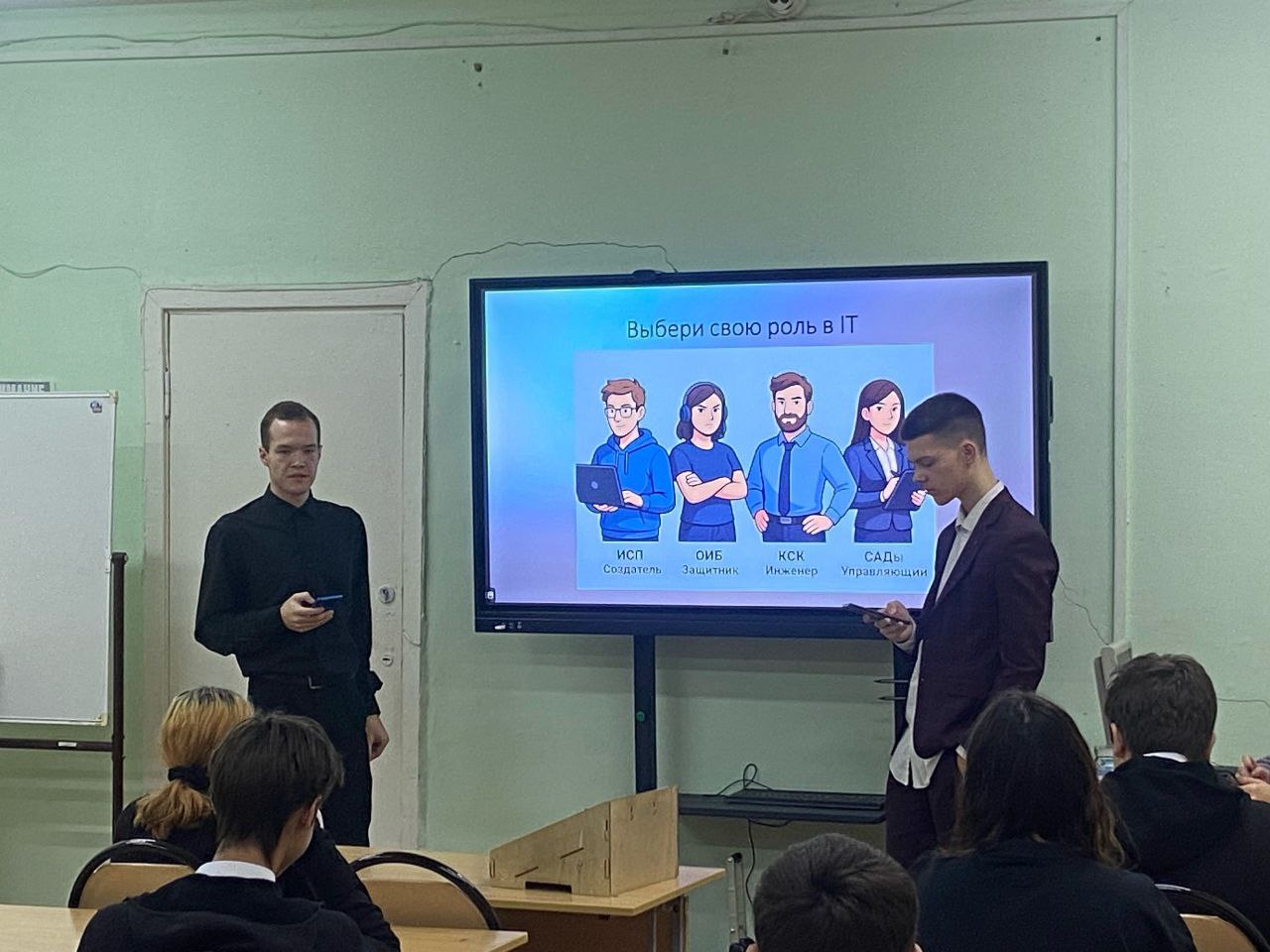 13 ноября студенты группы ОИБ-21 побывали в школе №11, где рассказали девятиклассникам о своей учебе в Колледже. Ребята делились историями выбора профессии, объясняли, чем IT-направление может увлечь, и как сделать осознанный выбор после 9 класса. Получился живой и полезный разговор о том, что ждет школьников в Колледже и как не пропустить свое направление.