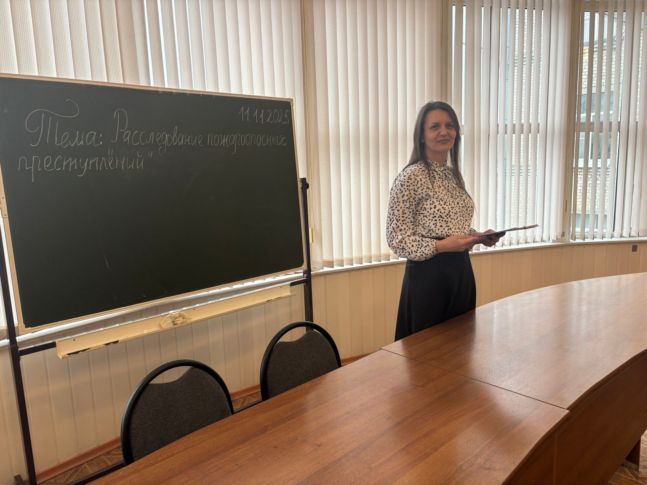 Преподаватель Нуждова Анастасия Александровна провела для группы ПБ-941 открытый урок по расследованию пожароопасных преступлений.
