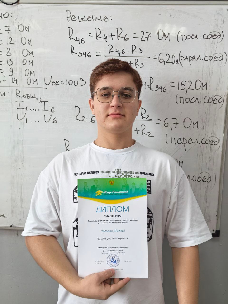А на олимпиаде по «Электроснабжению» Алибеков Арсен снова в числе лучших занял первое место! Мамчак Матвей также достойно представил Колледж в этой дисциплине.
