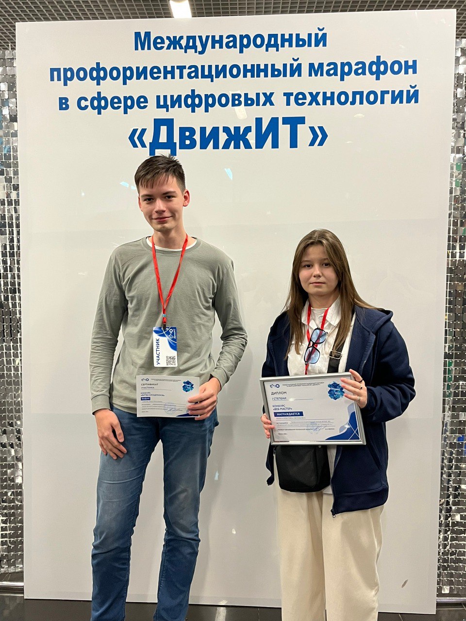 Наши студенты не просто смотрели — они побеждали! Поздравляем Кристину Яшину (группа ИСП-942), занявшую 1 место в конкурсе «Веб-мастер», и Никиту Громова (группа САД-934) с успешным выступлением в «Битве сисадминов»!