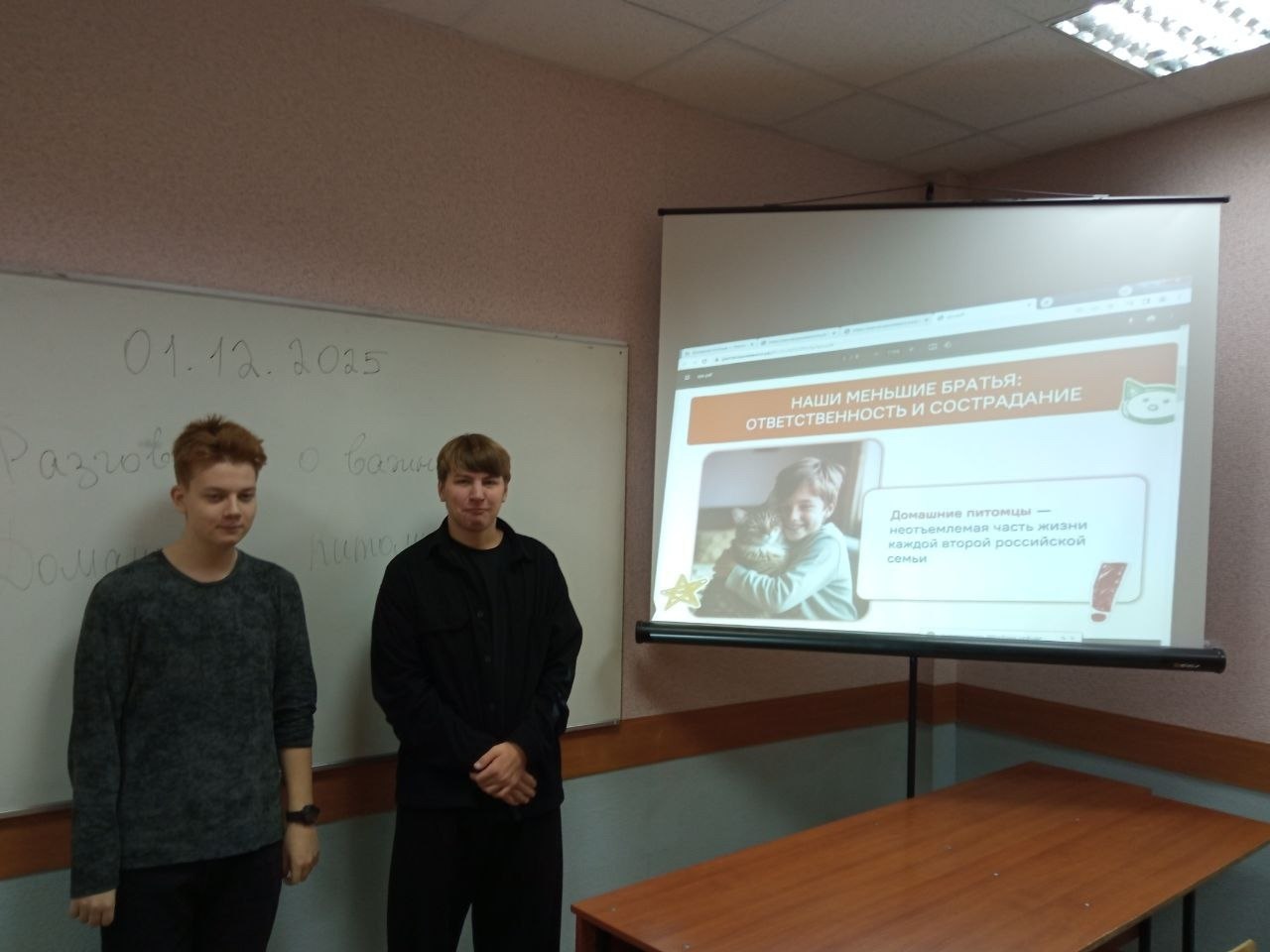 Обсудили, как важно относиться к животным с ответственностью и заботой. В России более 500 приютов, которым помогают сотни тысяч волонтёров. Совсем скоро, 5 декабря, отмечается День волонтёра — день тех, кто бескорыстно помогает и людям, и животным.