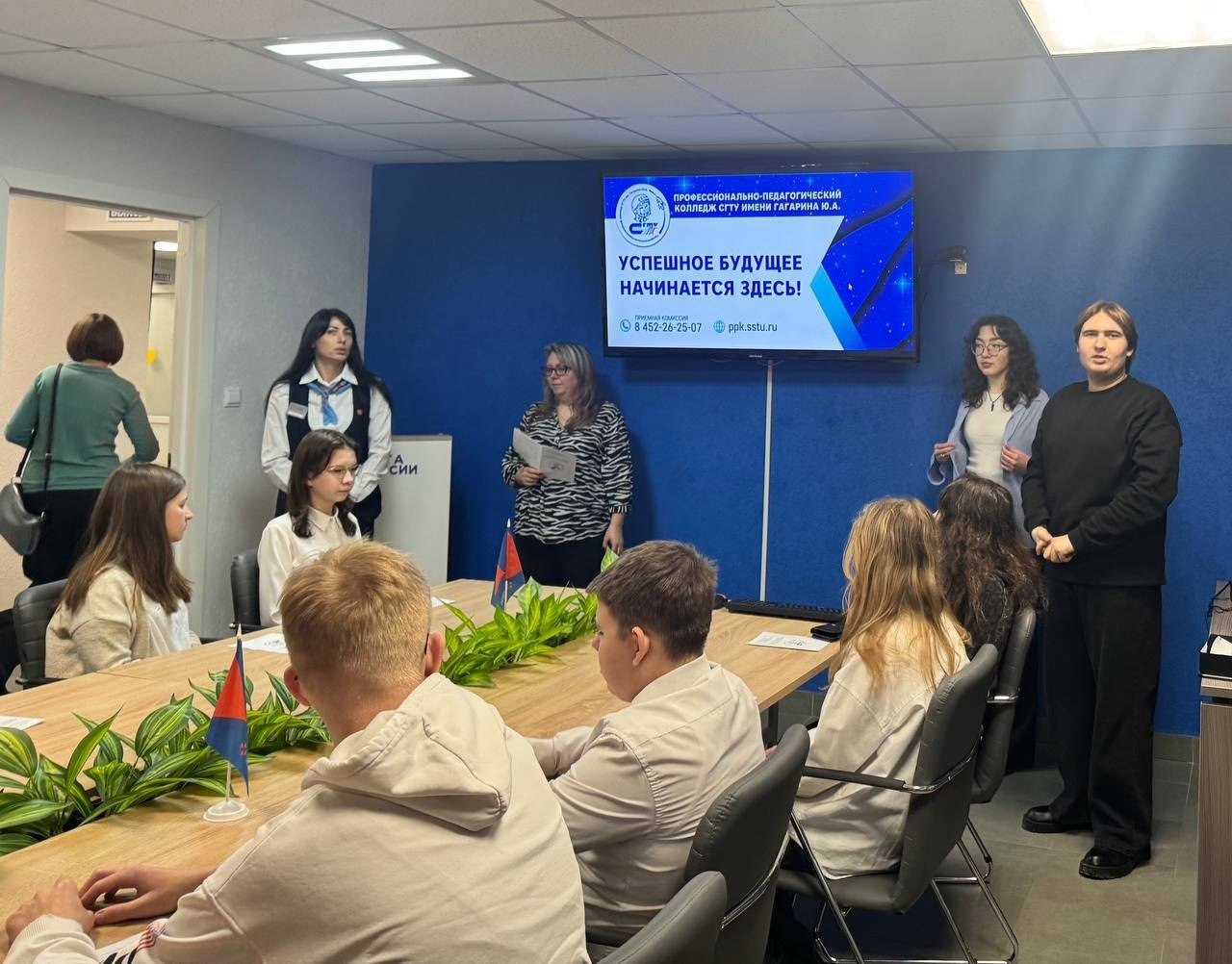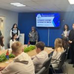 На встрече со школьниками МОУ «СОШ № 9» выступили наши студенты Артём Николаев, Александра Сухорукова и Яна Хмеленко вместе с преподавателем Татьяной Александровной Селезнёвой. Они рассказали об учёбе, студенческой жизни и перспективах специальности «Туризм и гостеприимство».