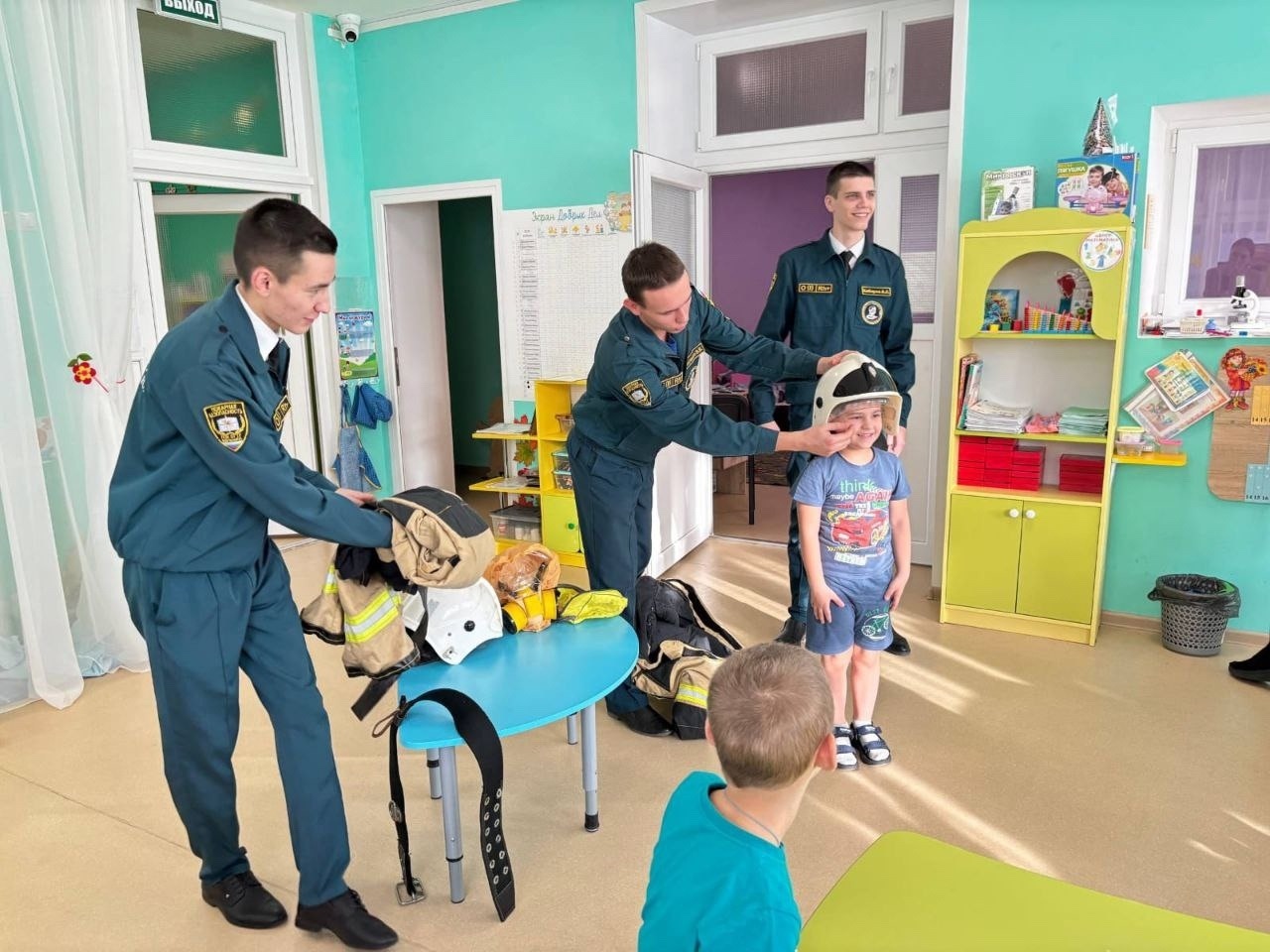 Владислав Коваленко, Александр Киберов и Данила Майшев организовали для дошкольников интерактивный урок «Огонь — наш друг, огонь — наш враг». В доступной и игровой форме будущие специалисты по пожарной безопасности объяснили детям основные правила обращения с огнём, поведения в опасных ситуациях и номера экстренных служб.