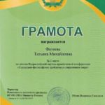 По итогам конференции Татьяна была награждена грамотой за 2 место!