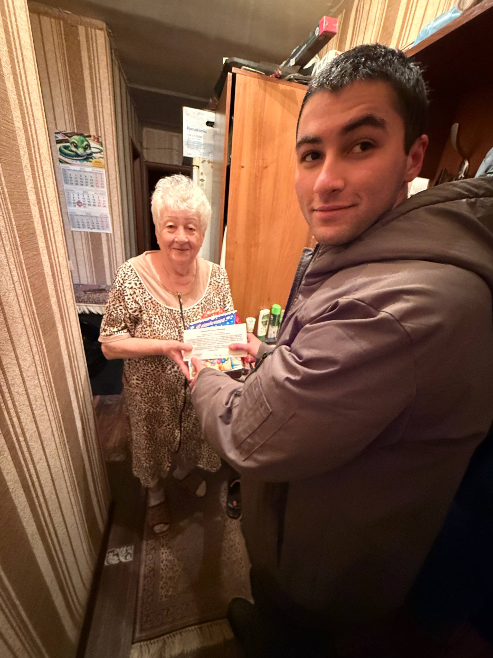 Ребята лично вручили ветеранам праздничные подарочные наборы, передав тёплые слова благодарности от всего коллектива и пожелания крепкого здоровья, душевного тепла и долгих лет жизни.