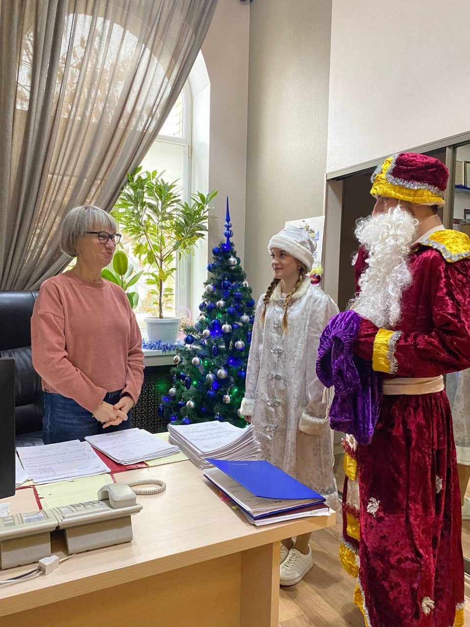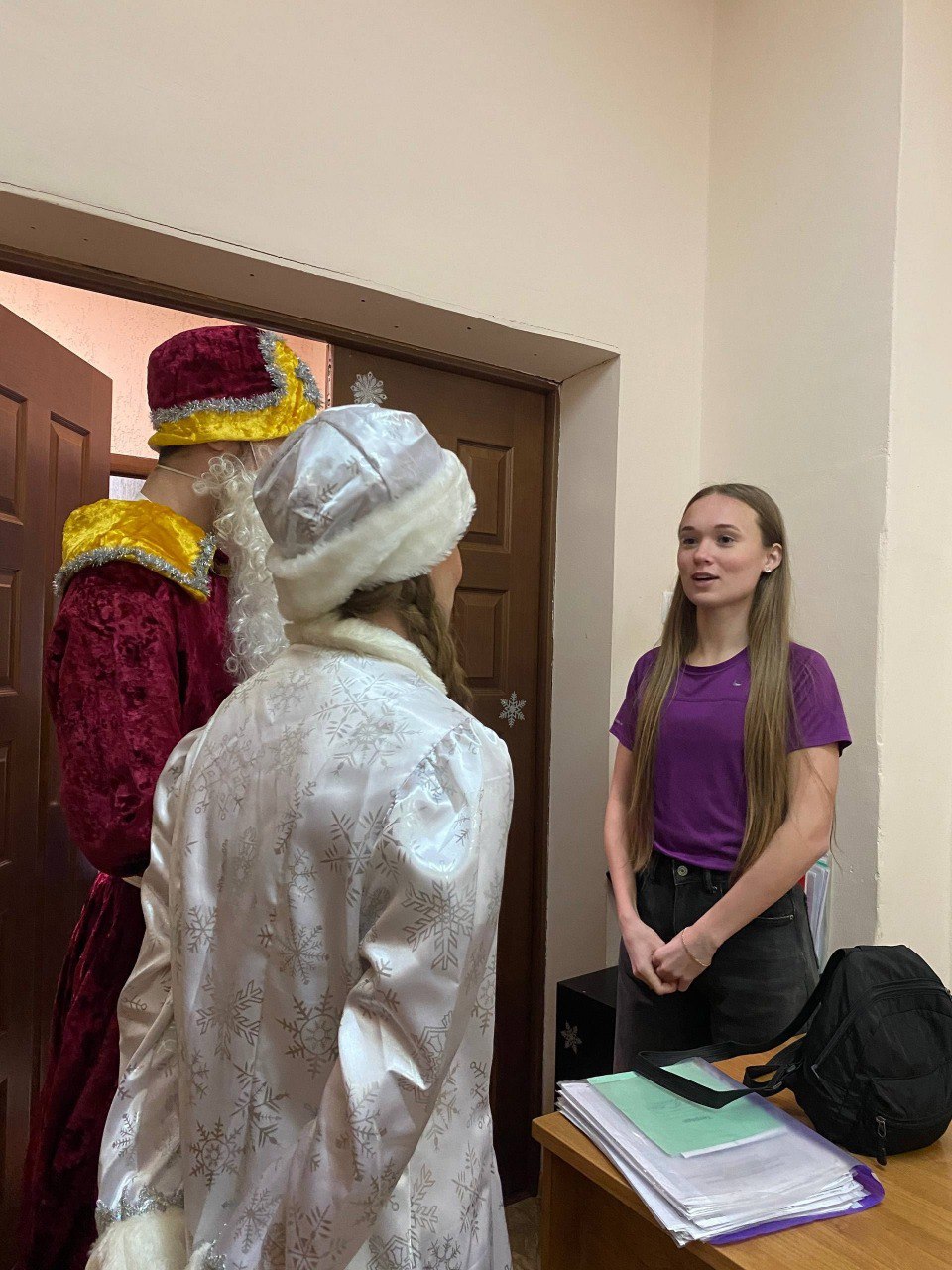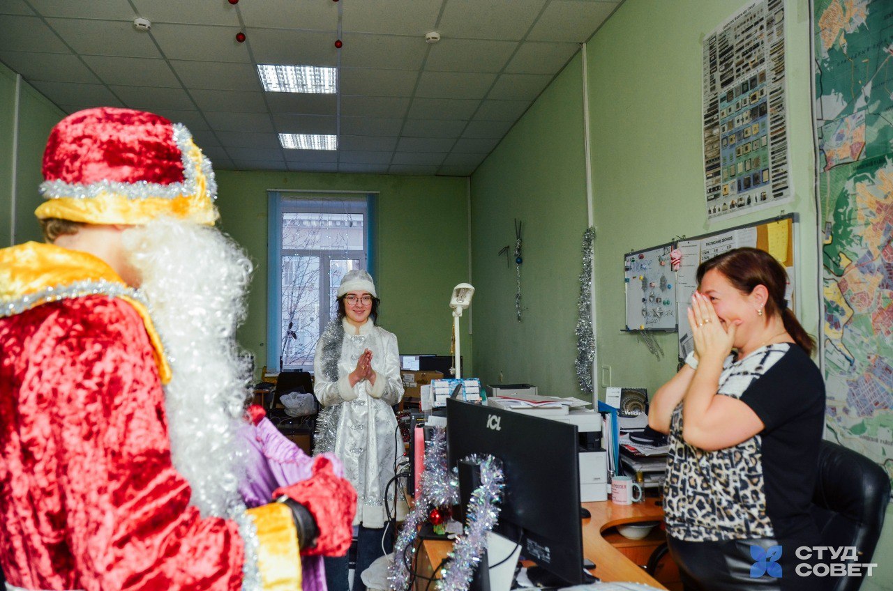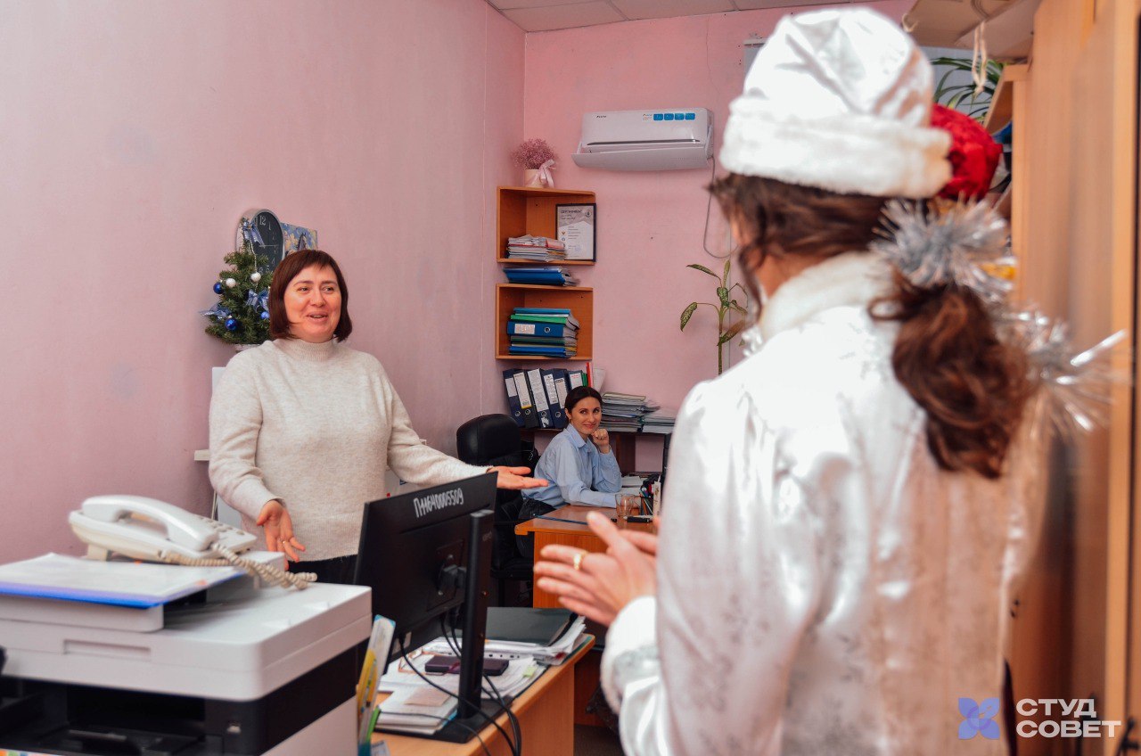 А если быть точнее — целая волшебная делегация! С поздравительной миссией по аудиториям, мастерским и кабинетам прошли разные Деды Морозы и Снегурочки, чтобы лично вручить новогодние пожелания добра, успеха и новых достижений нашим дорогим сотрудникам и студентам.