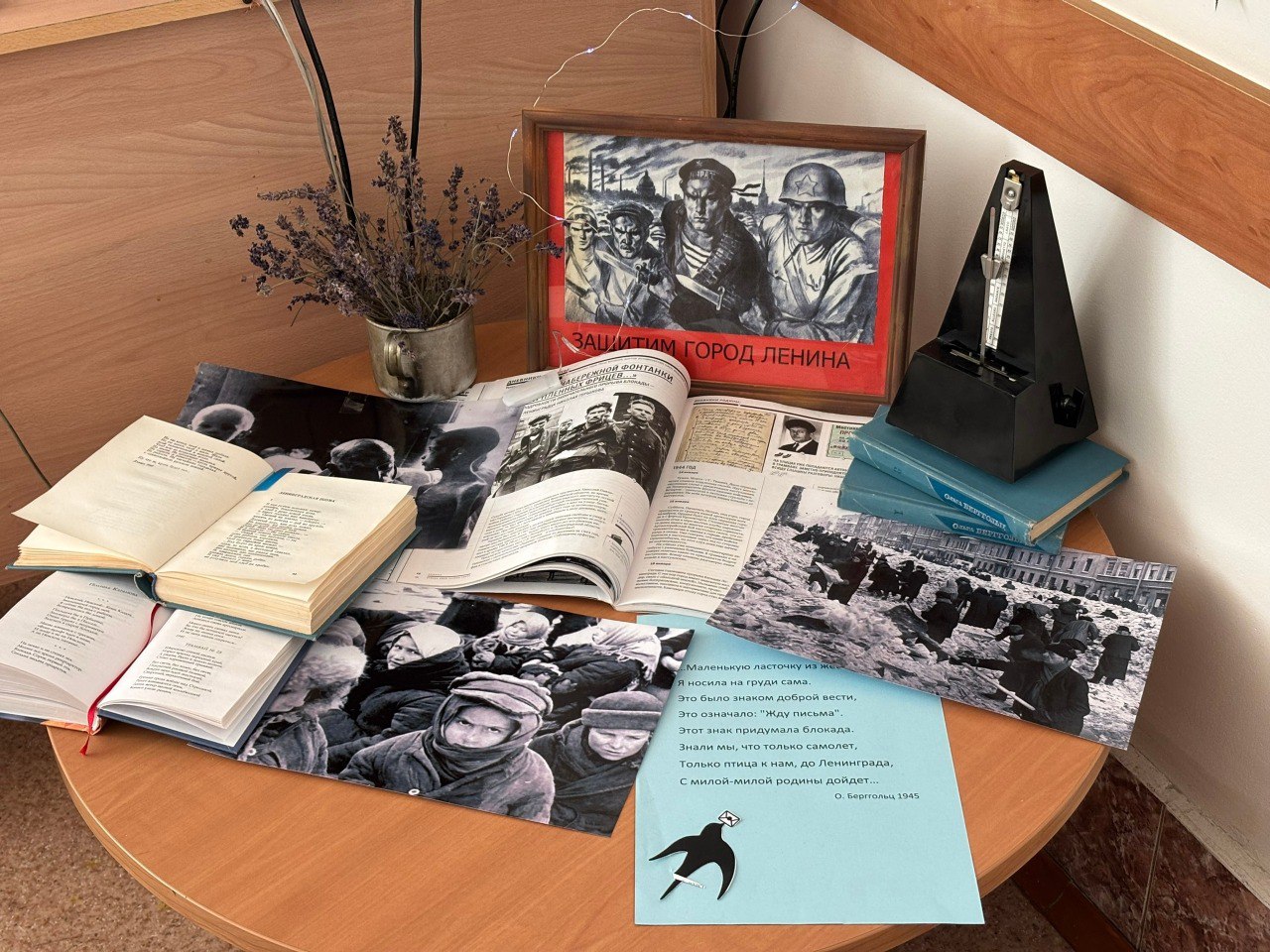 Библиотекарь Елена Оскаровна Дробашевская подготовила специальную выставку с историческими документами, фотографиями, книгами и воспоминаниями очевидцев тех страшных 872 дней.