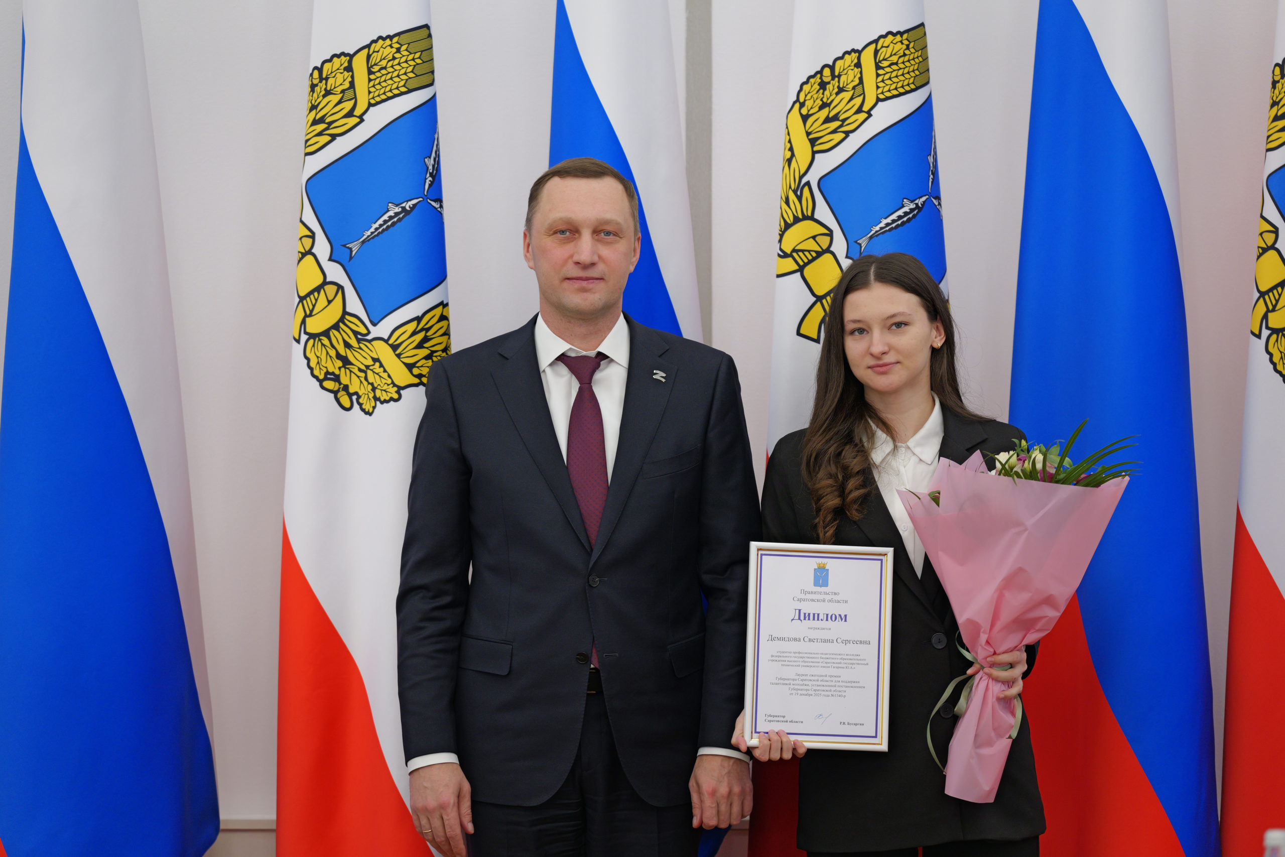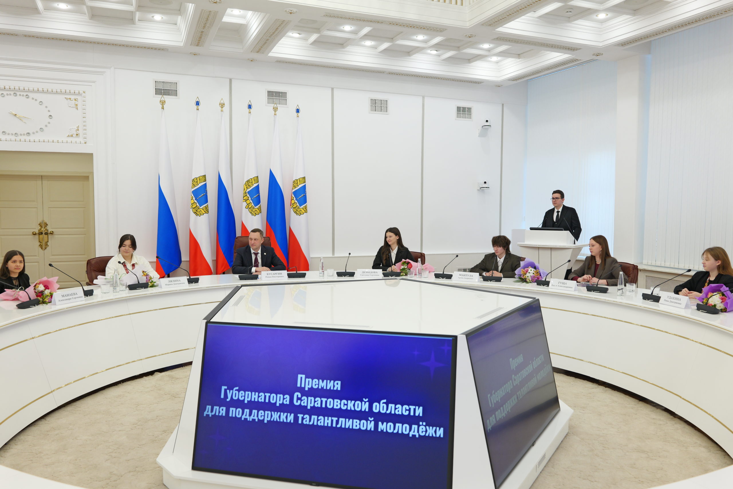 В Правительстве Саратовской области Губернатор Роман Бусаргин вручил премии активной молодёжи региона. Этой награды удостаиваются жители в возрасте от 16 до 35 лет, одержавшие победу в творческих конкурсах всероссийского уровня.
