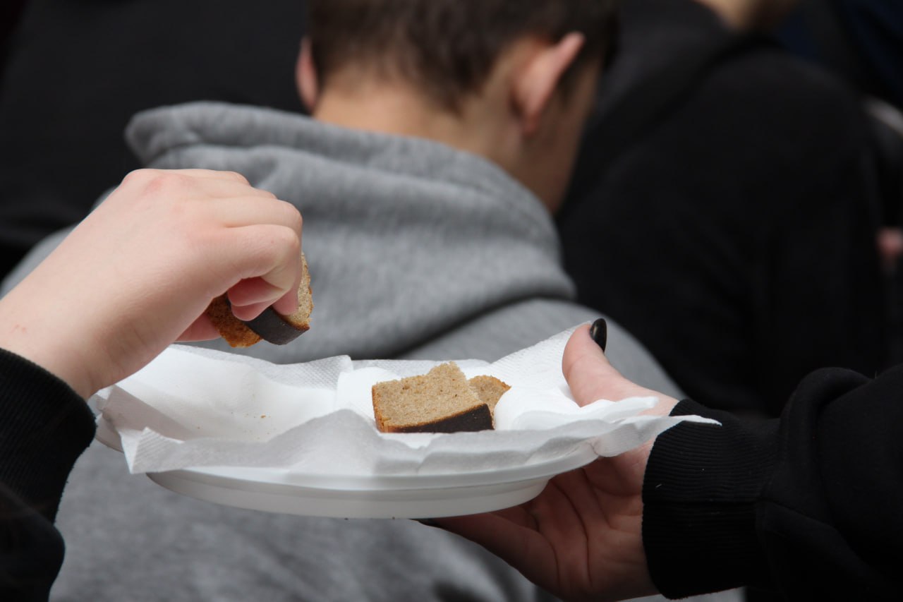 В завершение акции каждый присутствующий мог взять в руки кусочек хлеба весом, приближенным к той самой минимальной блокадной норме. Этот символ — напоминание о цене жизни и стойкости ленинградцев.