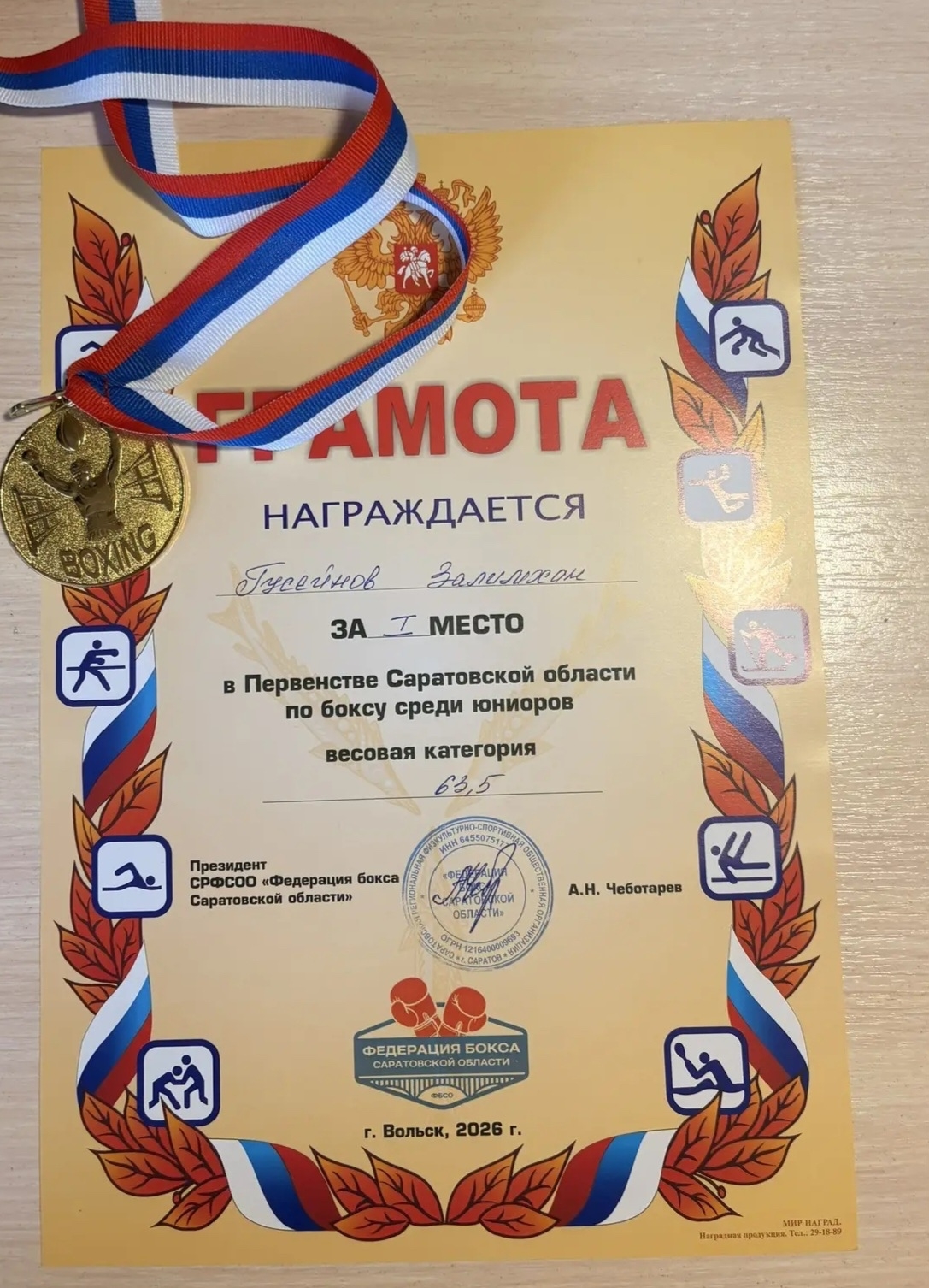 Залимхан Гусейнов (группа НГМ‑911) стал чемпионом Первенства Саратовской области по боксу среди юниоров в весе до 63,5 кг! Поздравляем с уверенной победой!