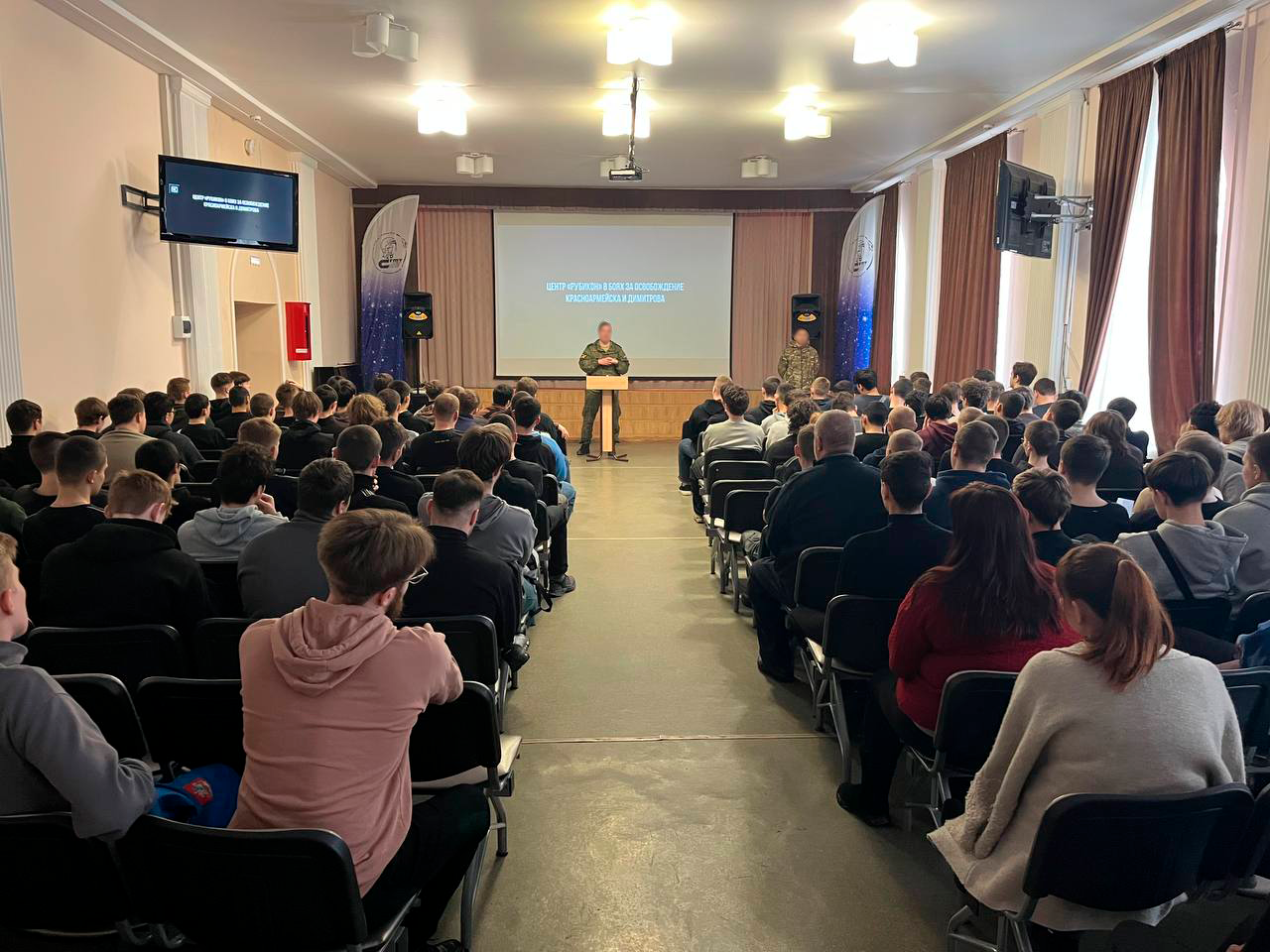 Перед студентами выступили офицеры Пункта отбора на военную службу по контракту и Научно-исследовательского центра беспилотных систем. Они подробно рассказали о возможностях прохождения службы по контракту, требованиях к кандидатам, социальных гарантиях, а также о современных направлениях развития военных технологий, в частности, в сфере беспилотных систем.