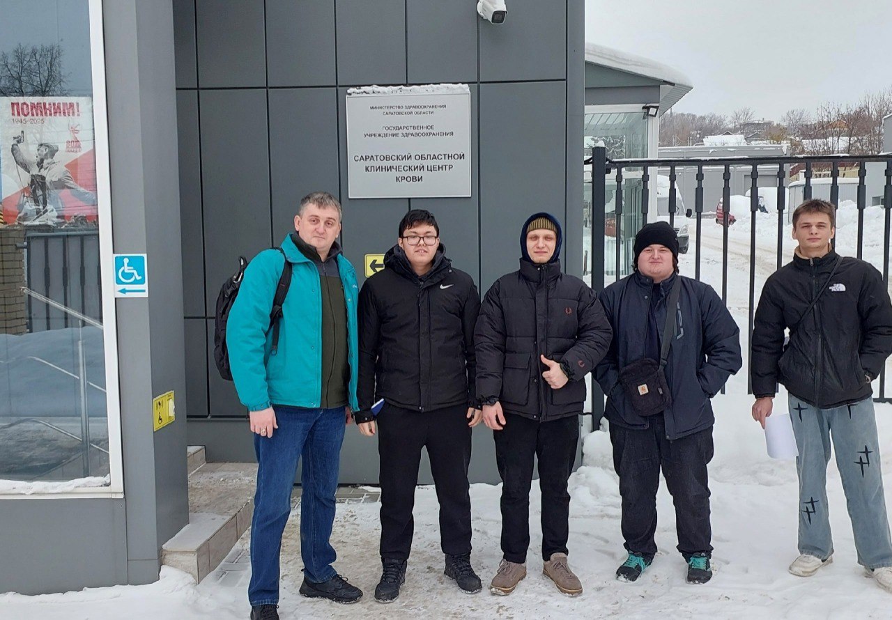 Студенты группы НГМ-932 – Чех Давид, Шандер Роман, Владимирцев Роман и Кинисов Асет – вместе с преподавателем Павлом Михайловичем Бакутиным посетили Саратовский областной клинический центр крови.