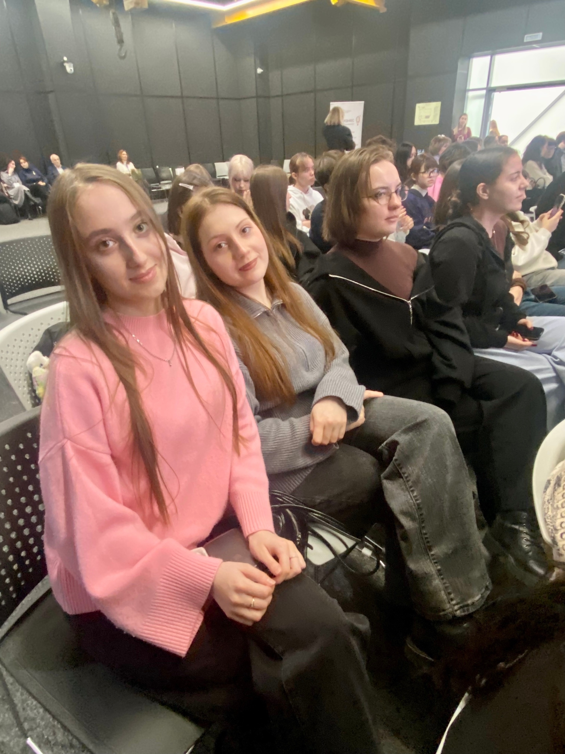Ребята не просто слушали — они анализировали: как построено выступление, какие вопросы задают из зала, как оформлены раздаточные материалы. В руки к нашим студентам попали флаеры, буклеты и визитки московских гостей — отличный материал для изучения!