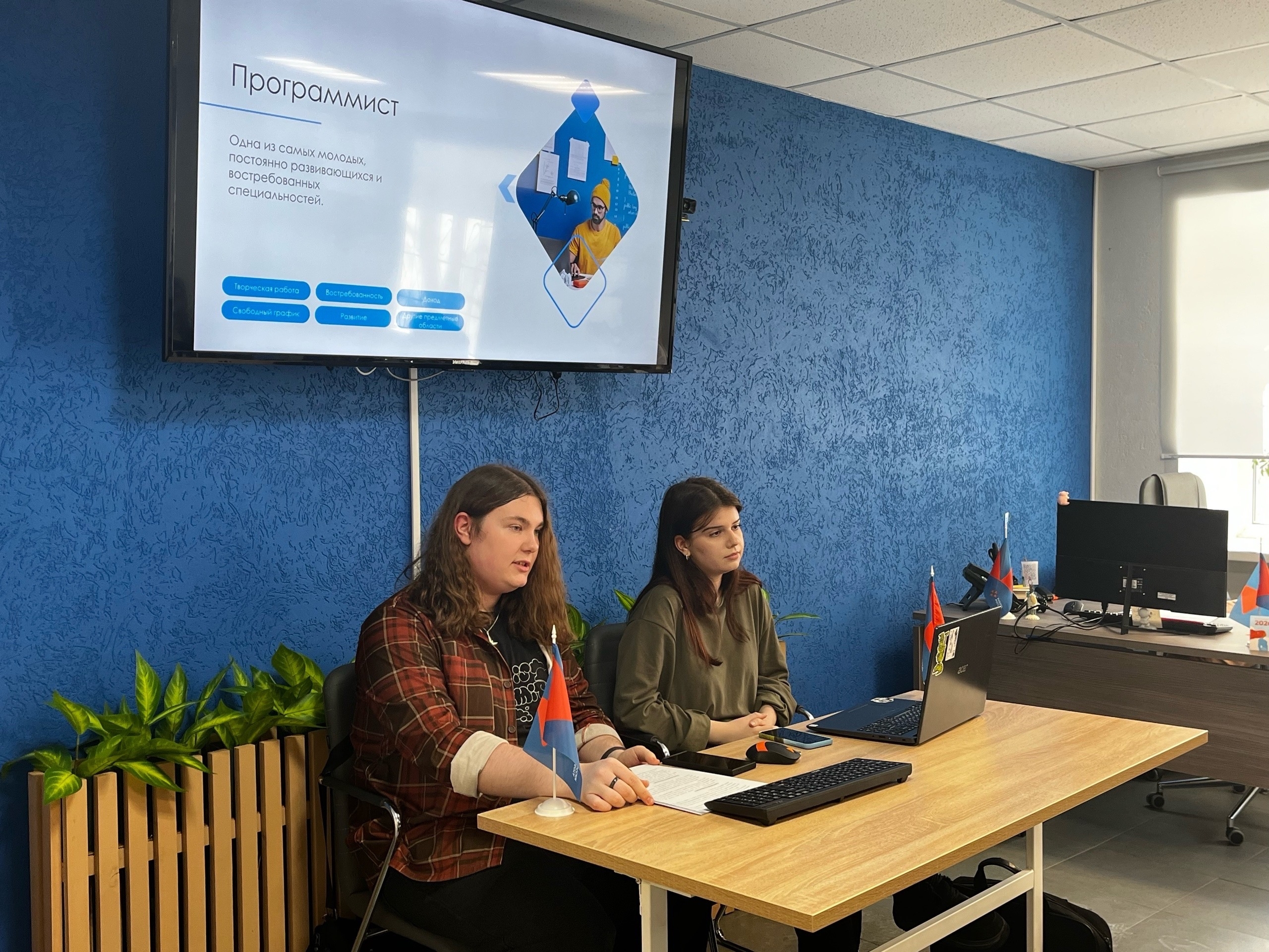 26 февраля студенты группы ИСП-933 Поляков Станислав и Федорина Ольга вместе с центром «Работа России» провели профориентационный интенсив для восьмиклассников.