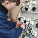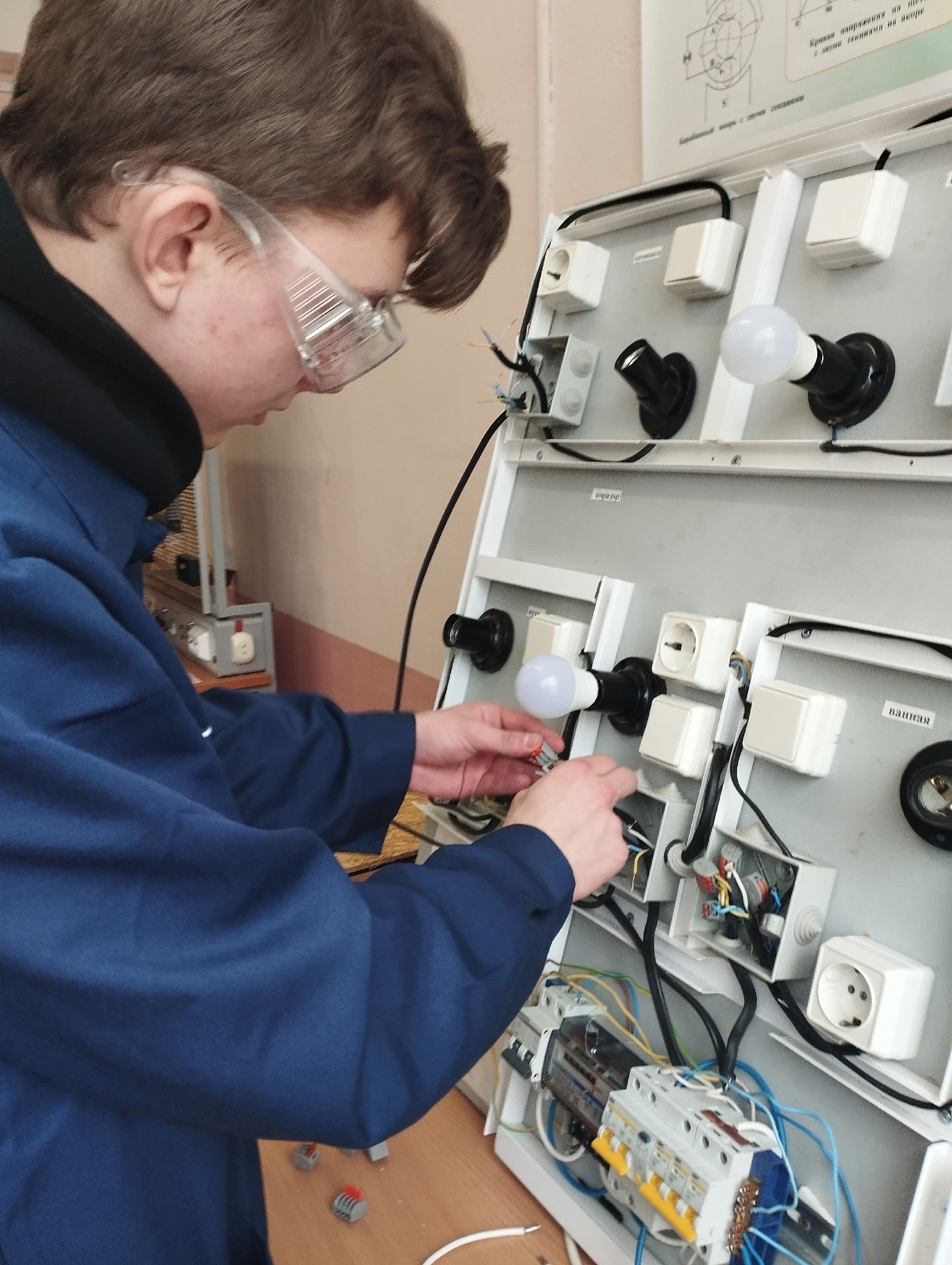 Виталий Викторович Акимов предложил студентам групп ЭСН-31М и ТЭО-31М собрать щиток и проводку в условиях, приближенных к реальным. Задание оказалось непростым: нужно было найти неисправности, не запутаться в маркировке проводов. Лучшим в сборке щитка стал Илья Потехин (группа ЭСН-31М), а в сборке проводки — Иван Пащенко (группа ТЭО-31М). Остальные студенты группы ЭСН-921 получили наглядный урок, как теория превращается в практику.