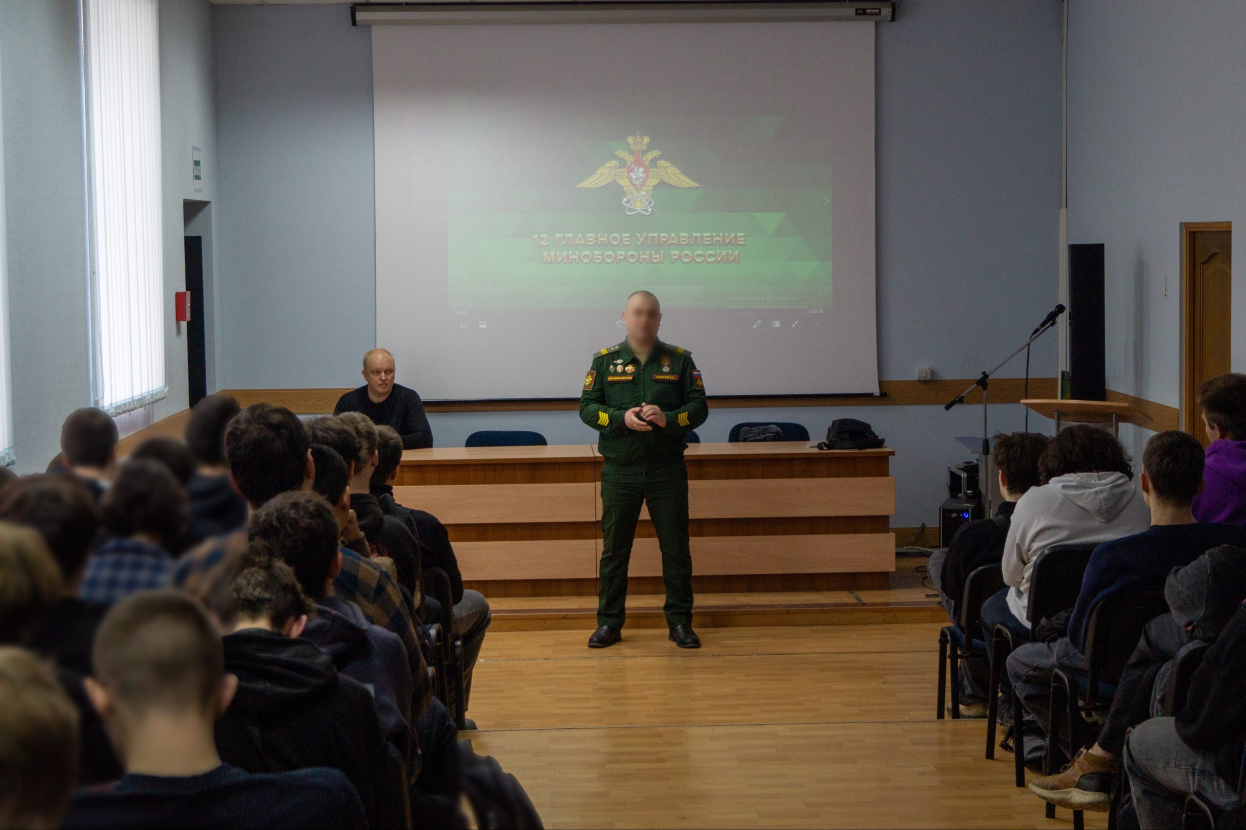 В Колледже продолжаются встречи студентов с представителями военных структур. Перед студентами отделения Информационных технологий выступили представители двенадцатого Главного управления Министерства обороны. Ребятам подробно рассказали: