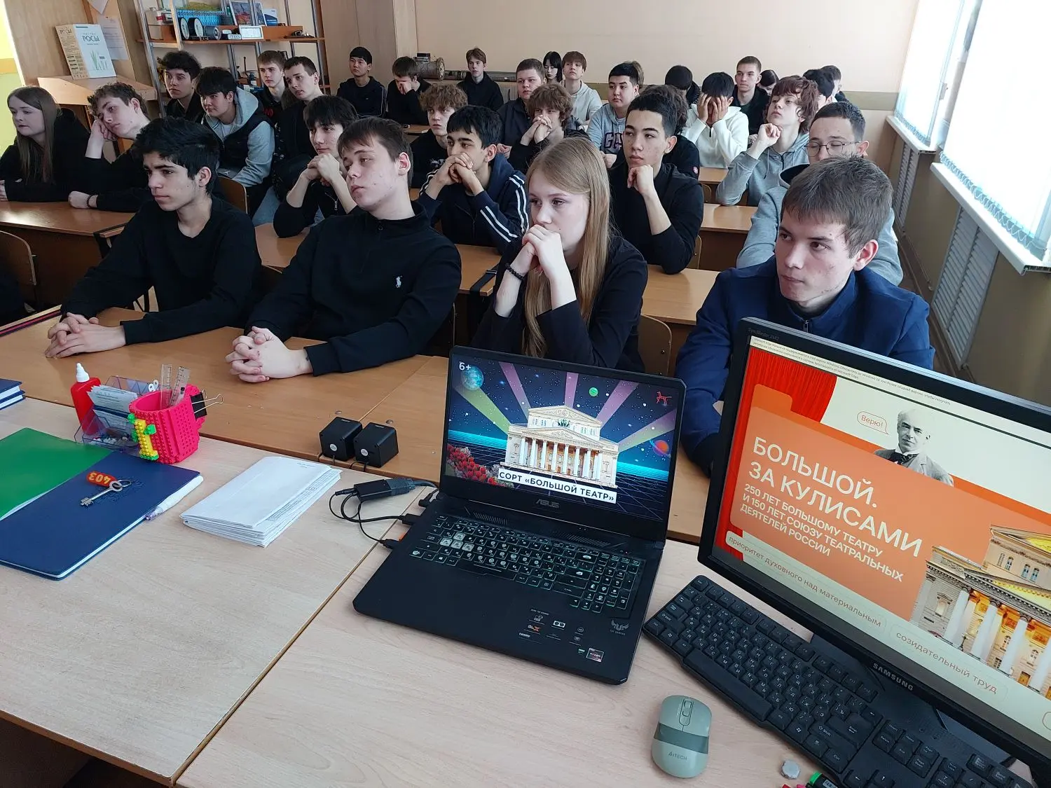 На очередном занятии «Разговоры о важном» студенты заглянули за кулисы одного из главных символов русской культуры – Большого театра. Ему исполняется 250 лет. А Союзу театральных деятелей России – 150. Два юбилея, которые напоминают: театр в нашей стране – это не просто развлечение, а часть национального достояния.
