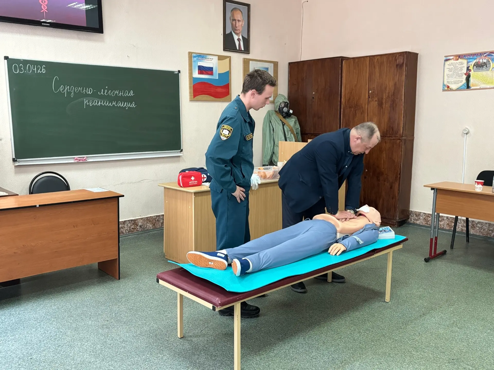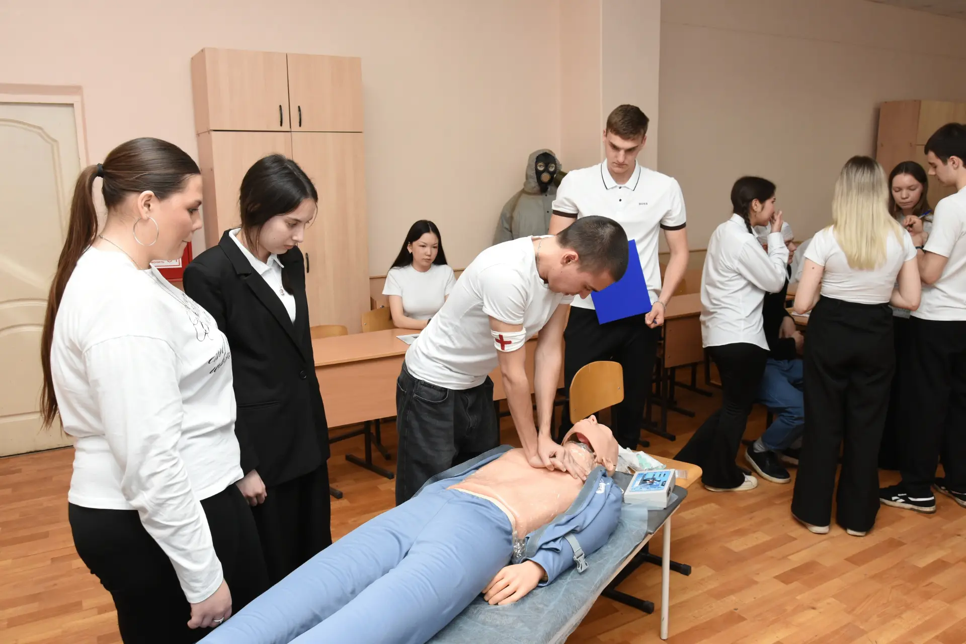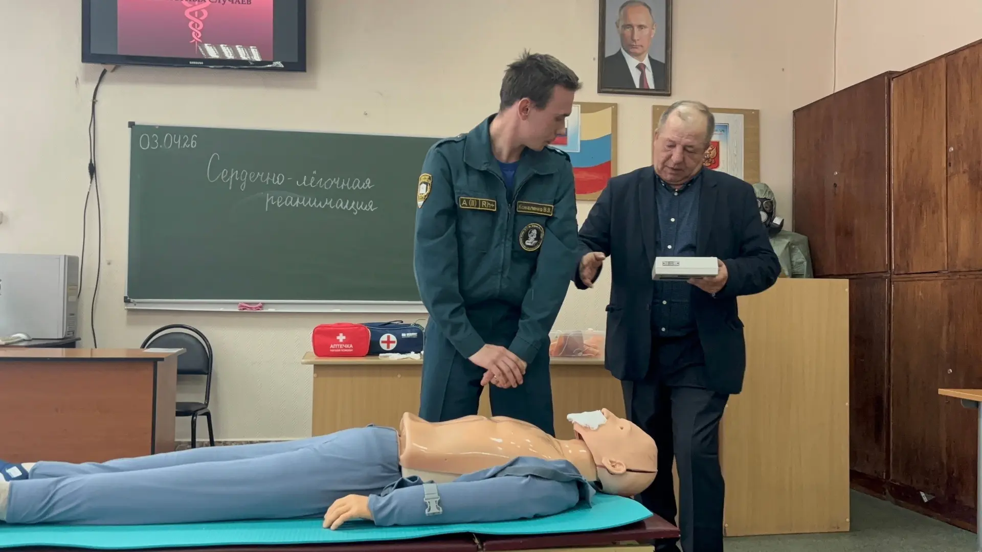У преподавателя Валерия Петровича Пивоварова состоялся мастер-класс на тему «Сердечно-лёгочная реанимация». На занятии с ребятами отделения Техносферной безопасности детально разобрали ключевые этапы: оценку состояния пострадавшего, вызов скорой, непрямой массаж сердца, искусственное дыхание и использование автоматического наружного дефибриллятора (АНД).