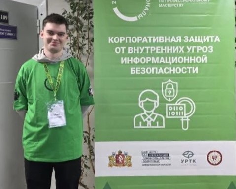 Студент группы ОИБ-941 Владислав Оглоблин вместе с экспертом-наставником Н.Л. Орловой представляют Саратовскую область на межрегиональном этапе чемпионата «Профессионалы» в компетенции «Корпоративная защита от внутренних угроз информационной безопасности».