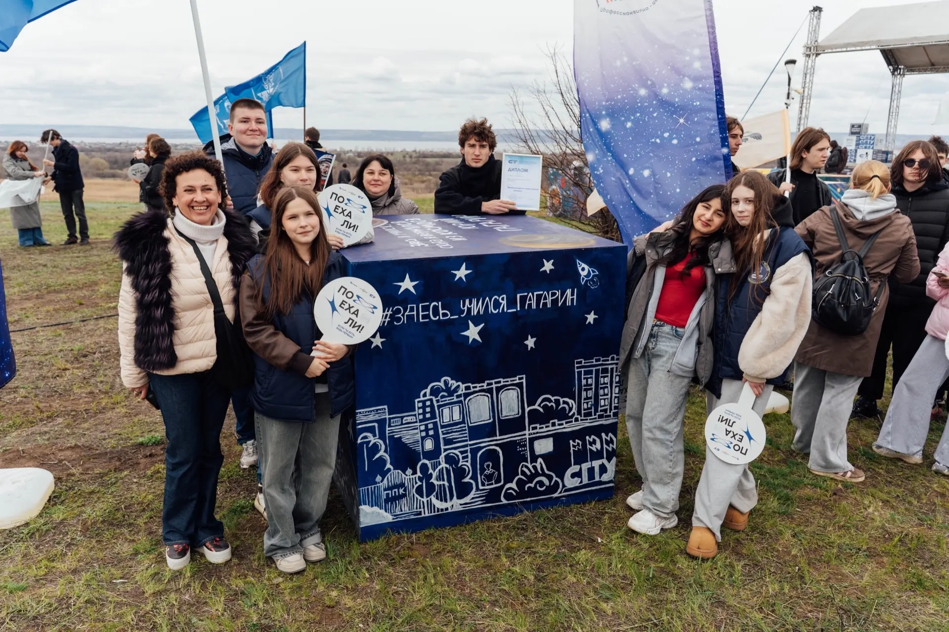 Сегодня на площадке у знаменитого спускаемого аппарата космического корабля развернулся молодёжный фестиваль, посвящённый 65-летию первого полёта человека в космос. Среди 500 участников – студенты СГТУ, Энгельсского технологического института, курсанты лётного училища, школьники и, конечно, наши ребята из Профессионально-педагогического колледжа.