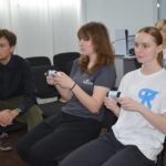 Ребята познакомились с концепцией фиджитал-спорта, а затем посоревновались в необычном формате настольного тенниса: сначала за игровой консолью, а потом за настоящим теннисным столом.