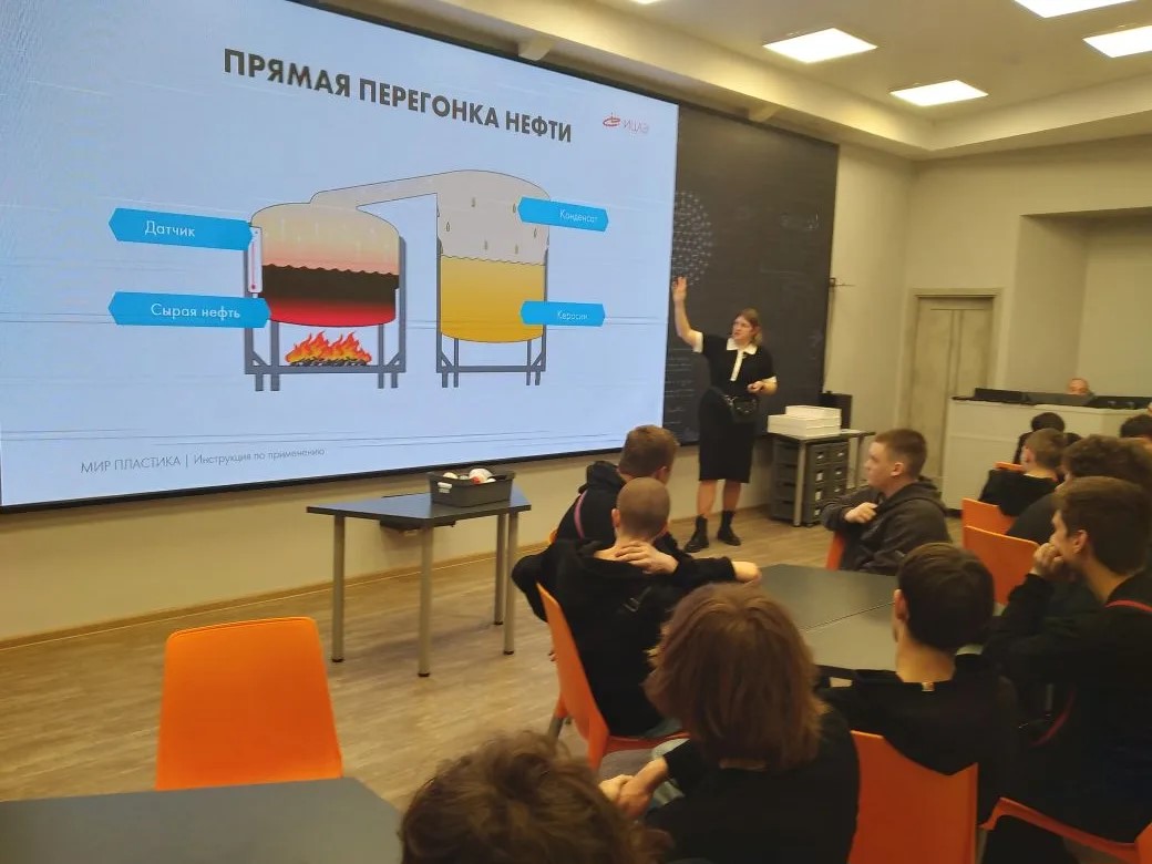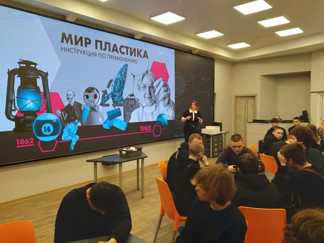 Темой занятия был «Мир пластика». Студенты разобрали историю создания пластика, его виды, типы и способы переработки. Выполнили практические задания, учившись определять виды пластика по маркировке. Обсудили, как пластик влияет на окружающую среду и здоровье человека.