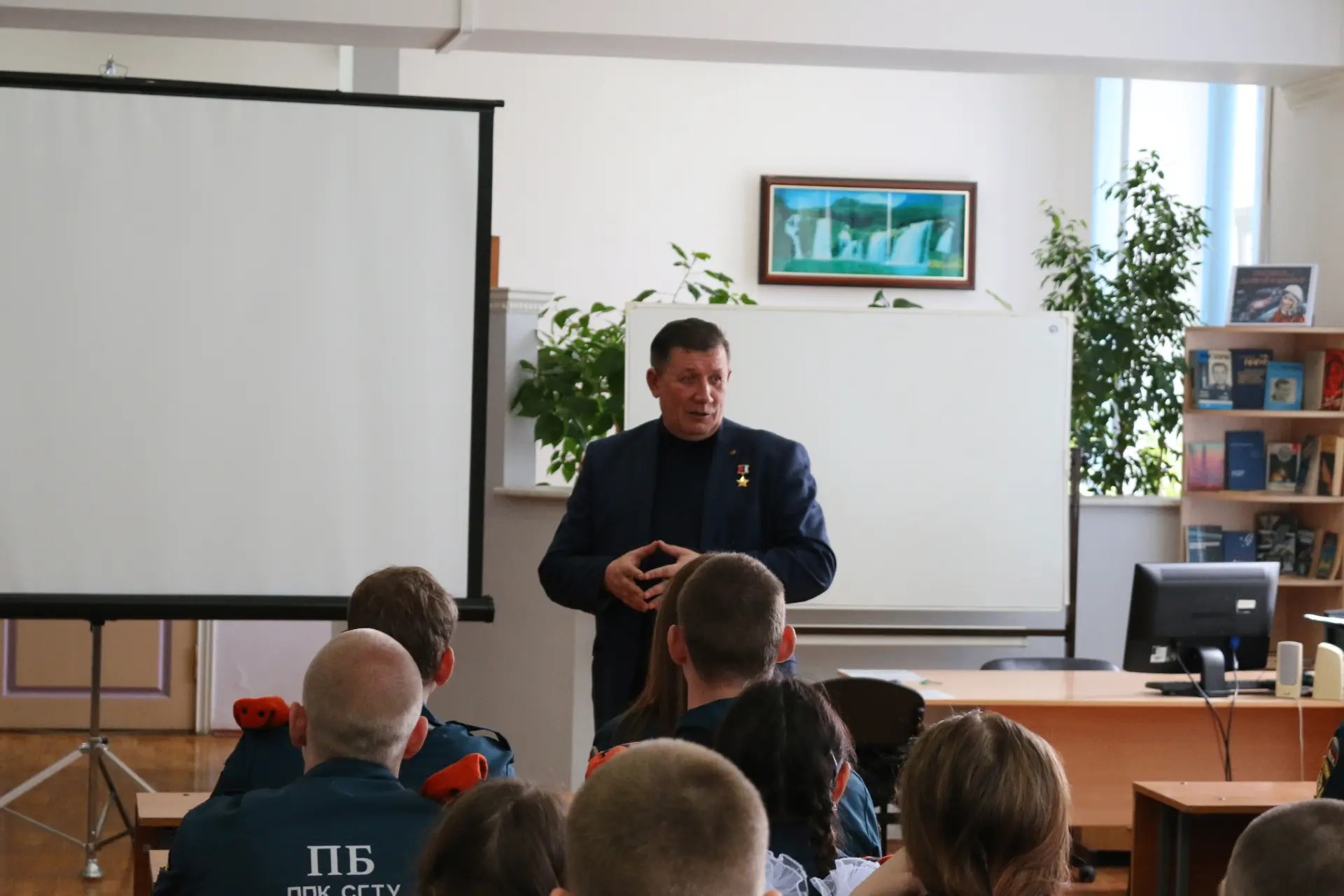 В гостях у студентов отделения Техносферной безопасности побывал Герой России, депутат Саратовской областной Думы седьмого созыва Александр Юрьевич Янклович. Встреча получилась не просто лекцией, а честным разговором о том, что такое настоящий патриотизм.
