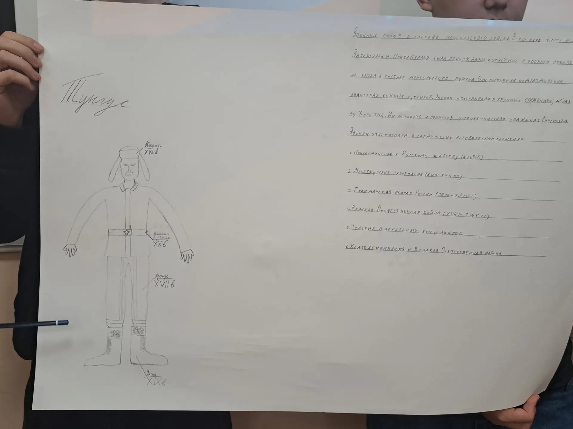 Преподаватель Василий Владимирович Задёра предложил студентам необычный формат: каждая подгруппа выбрала один из коренных народов нашей страны и создала его исторический портрет. Ребята проследили, как менялась одежда представителей этого народа на протяжении веков, в каких ключевых событиях они участвовали и какие имена вписали в славную летопись Отечества.